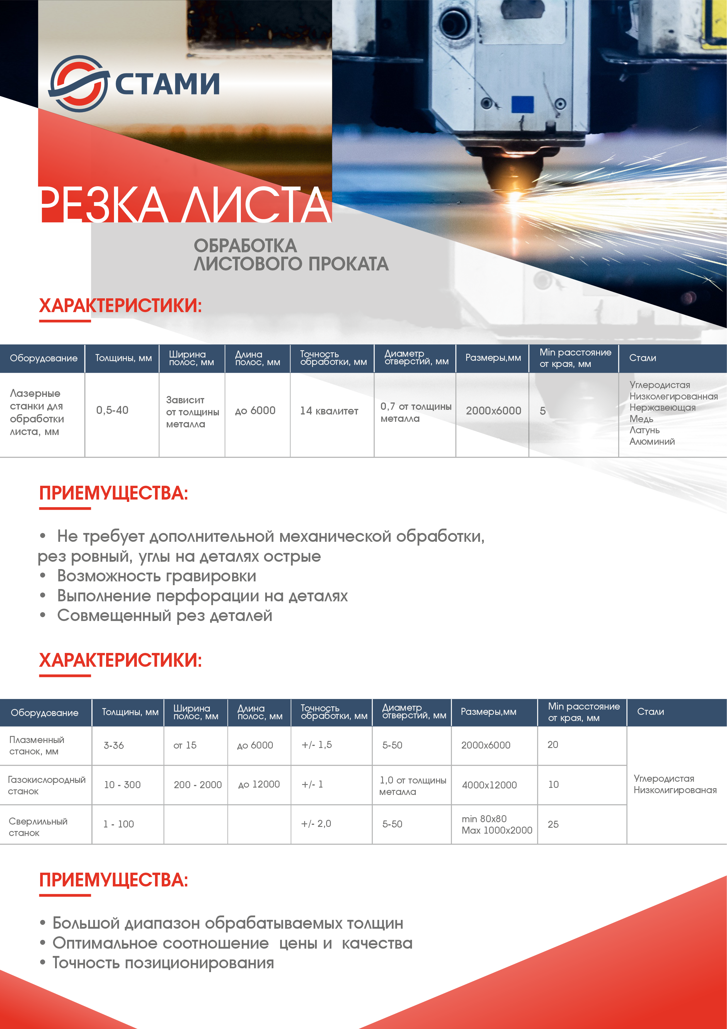 Таким образом, СМЦ «Стами» осуществляет раскрой холоднокатаного листа конструкционных марок сталей, в том числе оцинкованный и с лакокрасочным полимерным покрытием толщиной от 0,3 до 2 мм и длиной от 300 до 4000мм.